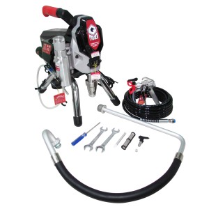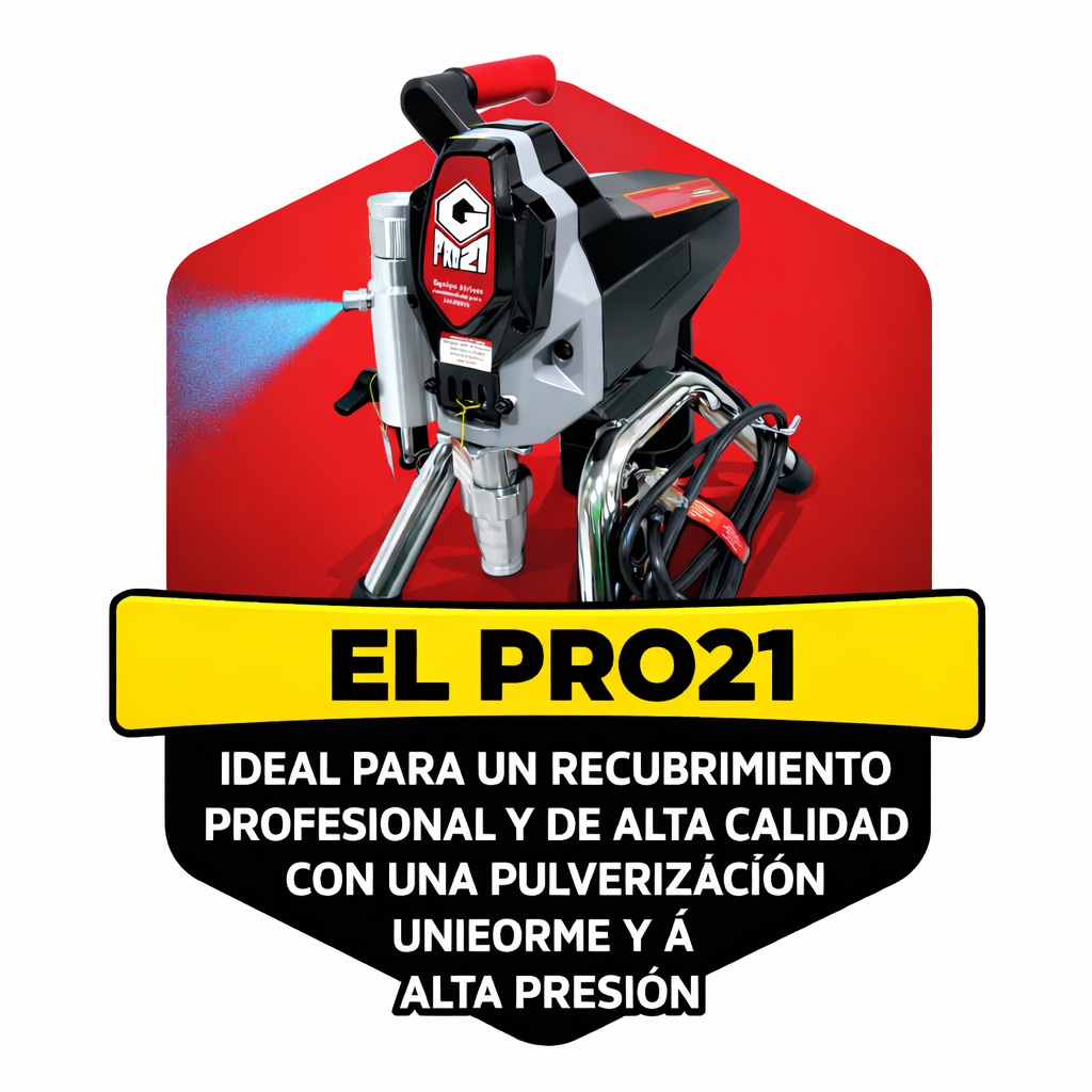Equipo airless de 1000 watts, diseñado para uso profesional y recomendado para la aplicación de recubrimientos base solvente. Ofrece una pulverización uniforme y de alta presión, permitiendo acabados de calidad profesional con mayor rapidez y menor desperdicio de material.