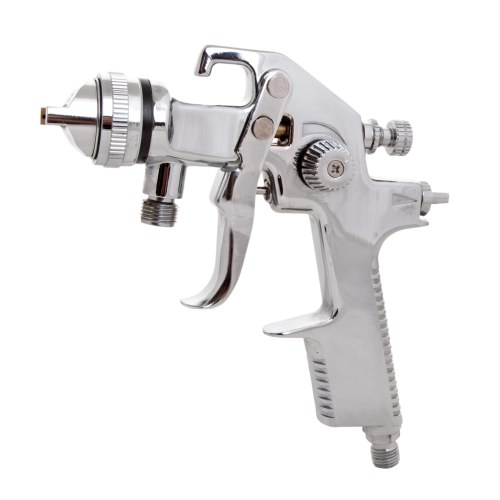 Tiene la ventaja de ser una pistola con sistema HVLP, con tres controles lo que hace que tenga una gran versatilidad, además si no se emplea para utilizarse con un equipo de estos puede conectarse a un vaso de succión y funciona perfectamente. Se recomienda su uso para el ramo del repintado automotriz, ebanistería y carpintería. Puede aplicar materiales como son esmaltes lacas acrílicas, barnices, selladores y tintas.