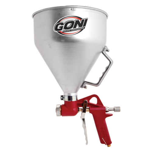 Pensada y diseñada para poder reducir el tiempo en la aplicación de las pastas texturizadas e inclusive el tirol siempre y cuando no sea un grano muy grande. Incluye tres boquillas para dar diferentes acabados, tiene una tolva con un volumen importante para el material.