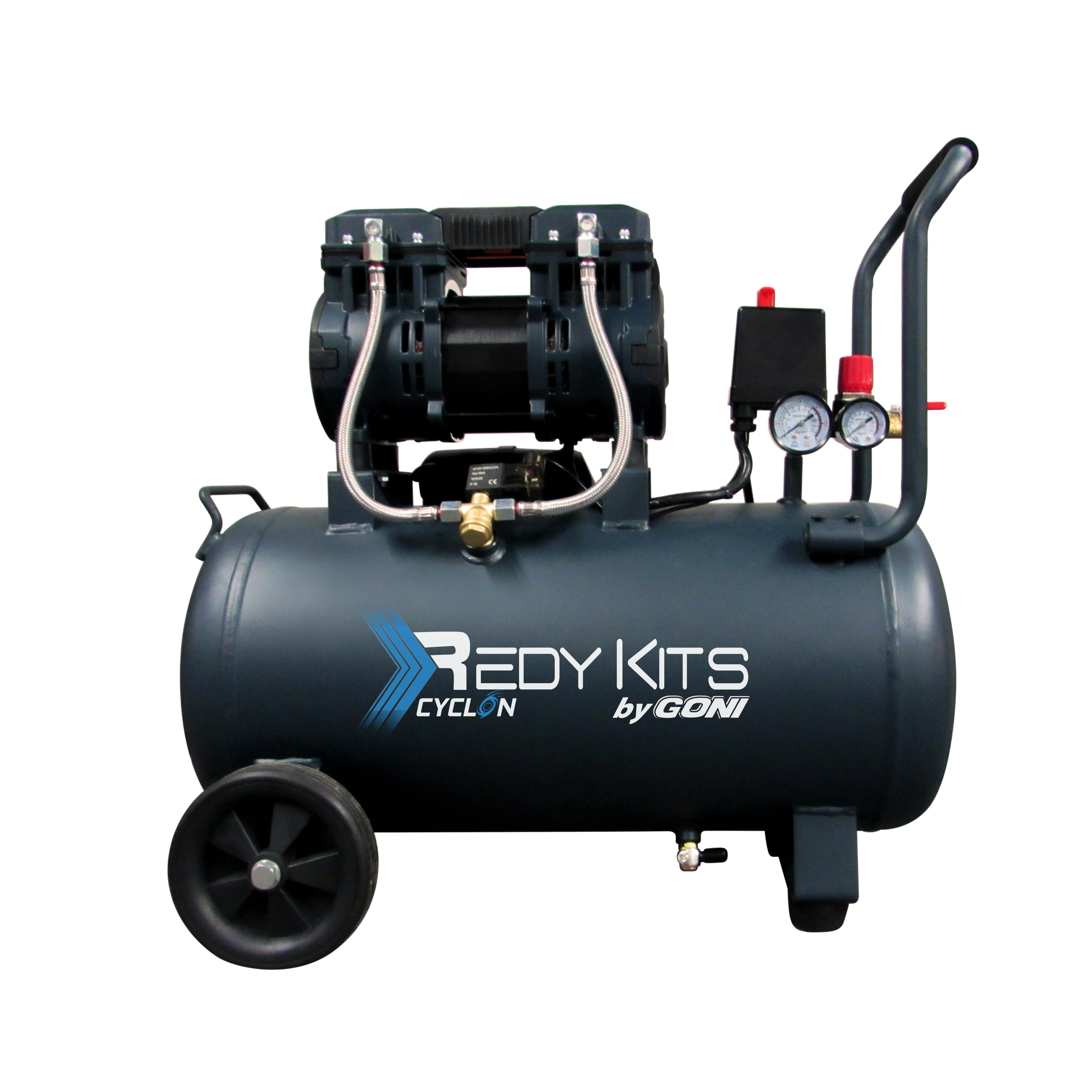 Equipo compacto libre de aceite, de 2 HP con un tiempo de rellenado de tan solo 110 segundos. Al ser un sistema silencioso emite únicamente 70 decibeles para disminuir el ruido, la base del motor posee anti-vibración en cada pata, además de ser libre de mantenimiento.