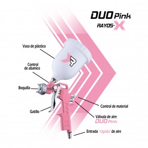 Pistola de gravedad DUO, 600ml boquilla 1.5mm PINK REDYKITS, Modelo 37003-PI